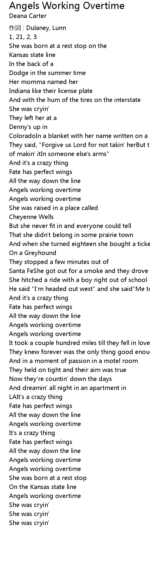 | Song | Angels Working Overtime |