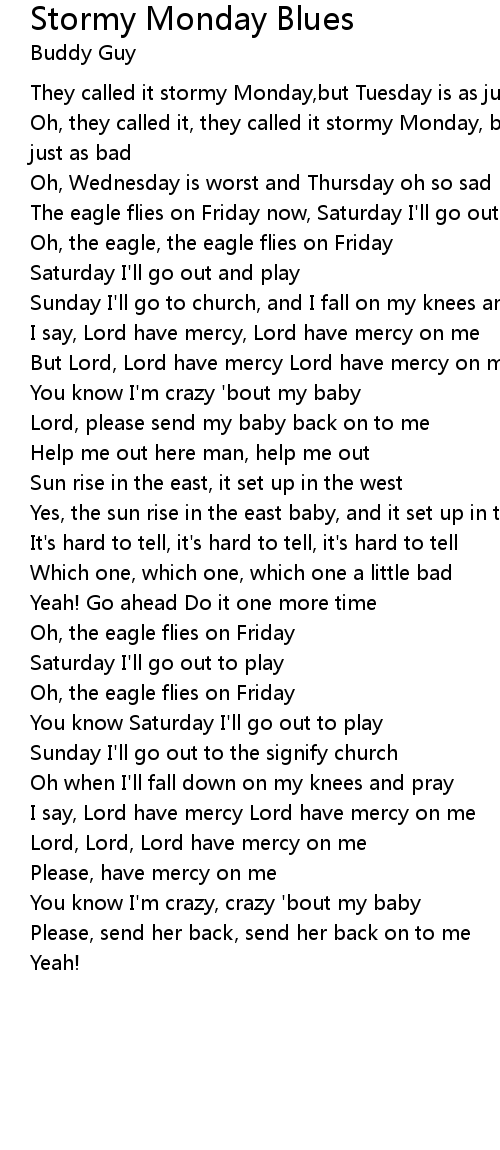Oh, they called it, they called it stormy Monday, but Tuesday, Tuesday is as just as bad |