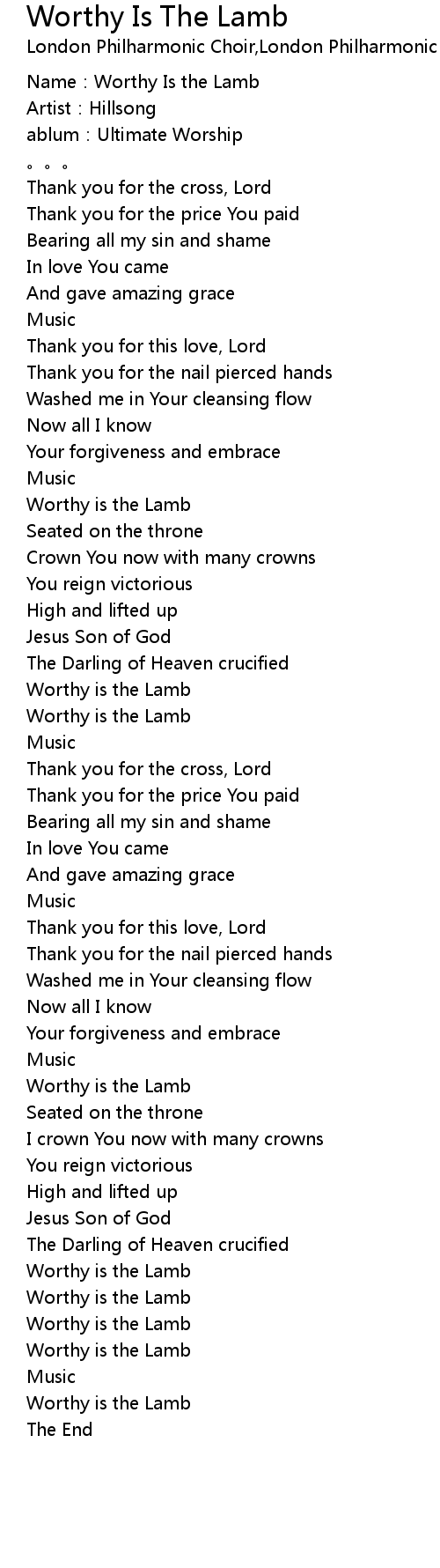 | [00:00.00] | Name:Worthy Is the Lamb |