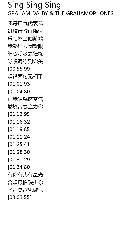 | [02:32.92][01:19.85] | 唱唱唱能够将将将 |