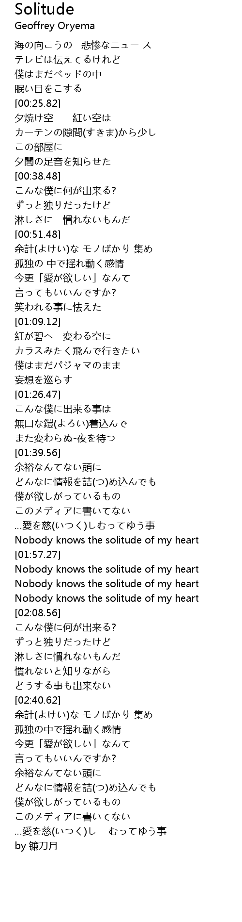 | [01:58.89] | Nobody knows the solitude of my heart |