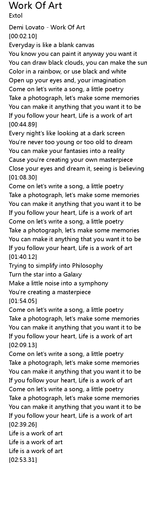 | [00:01.00] | Demi Lovato - Work Of Art |