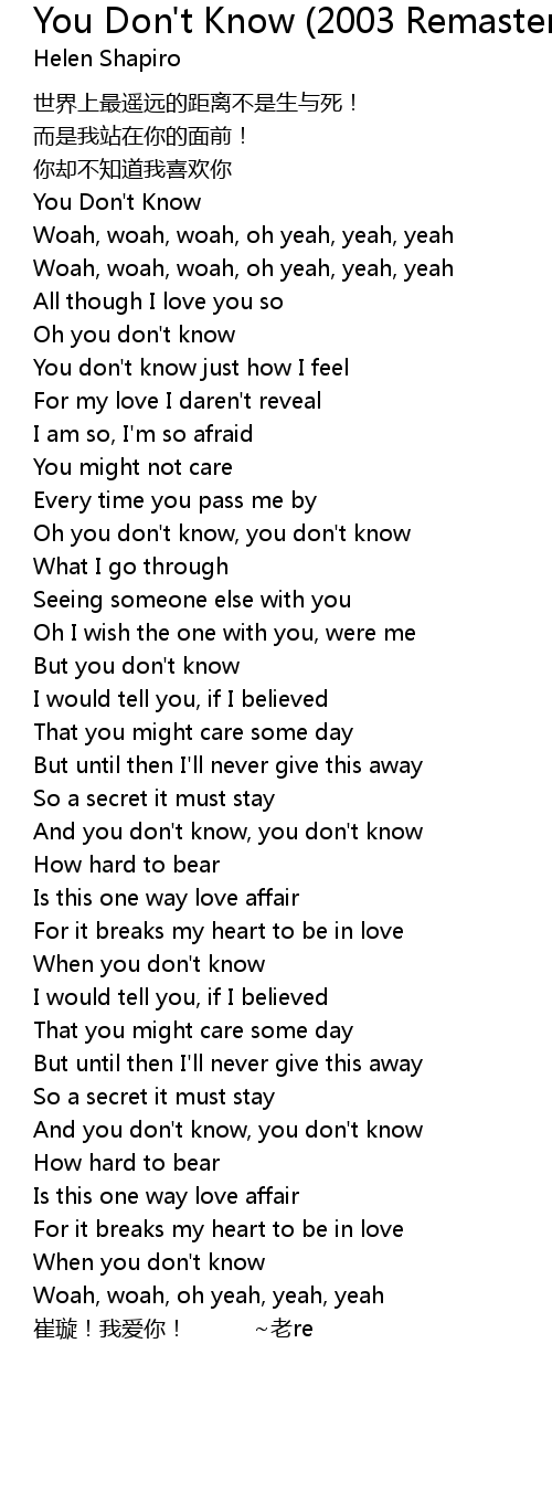 | [00:00.40] | You Don't Know |