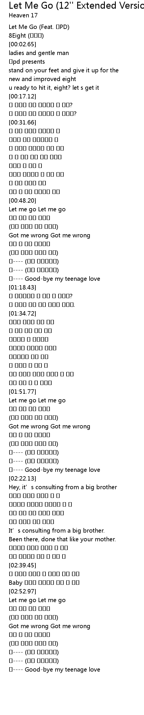 | [00:00.25] | Let Me Go Feat. PD |