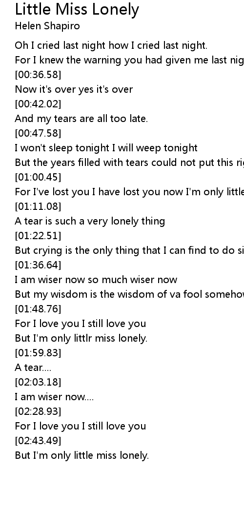 For I've lost you I have lost you now I'm only little miss lonely. |