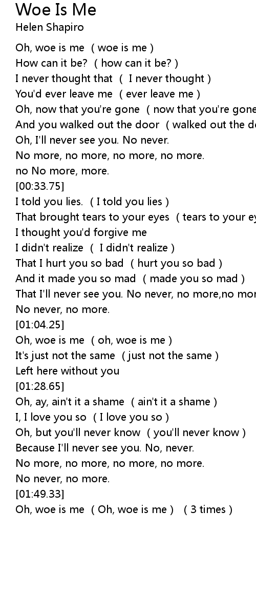 | [01:51.39] | Oh, woe is me (Oh, woe is me) (3 times) |
