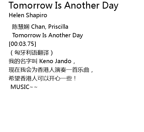 | [00:01.45] | chén huì xián Chan, Priscilla |