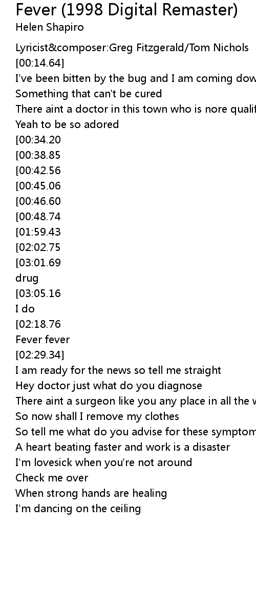 [02:53.64][01:59.43][01:42.83][00:50.73] Fever sure has got me good