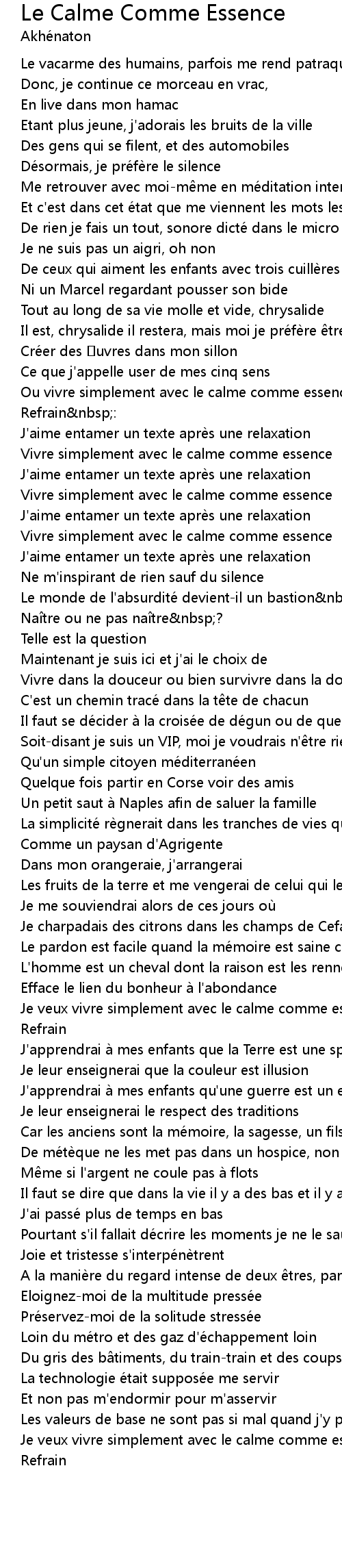 | Je veux vivre simplement avec le calme comme essence | |