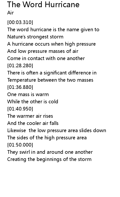 The word hurricane is the name given to |