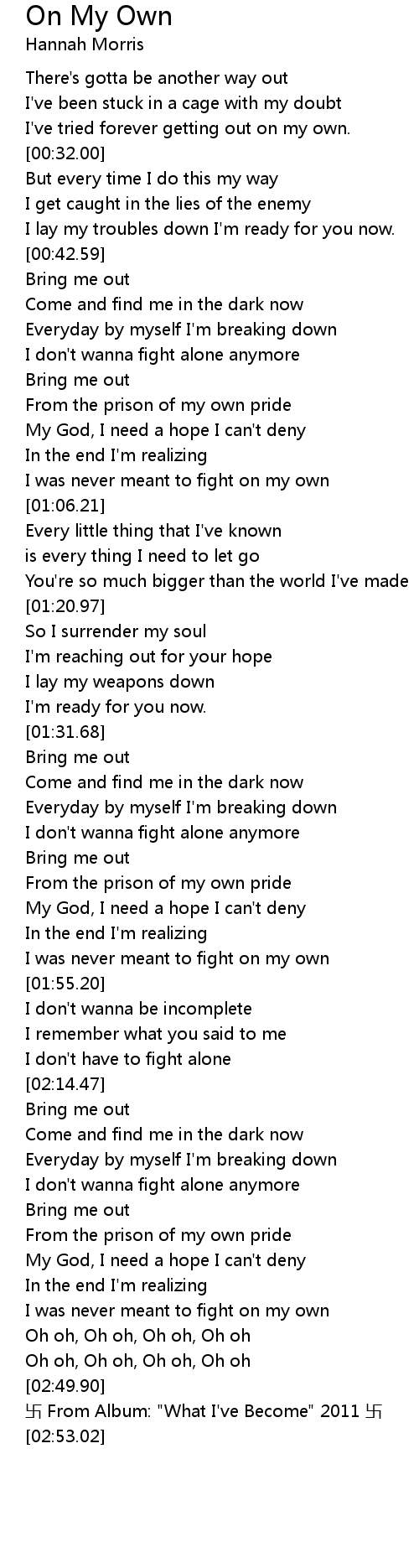| [00:27.73] | I' ve tried forever getting out on my own. |