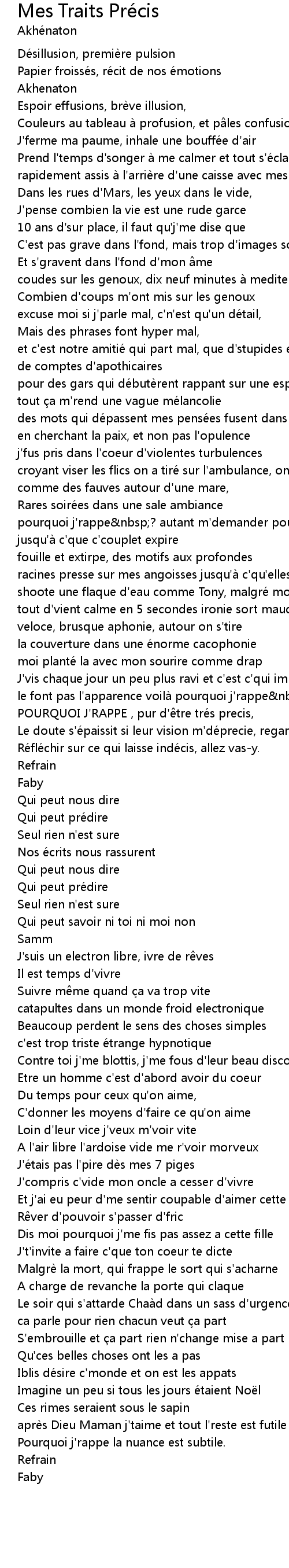 | POURQUOI J' RAPPE , pur d' tre tre s precis, | |