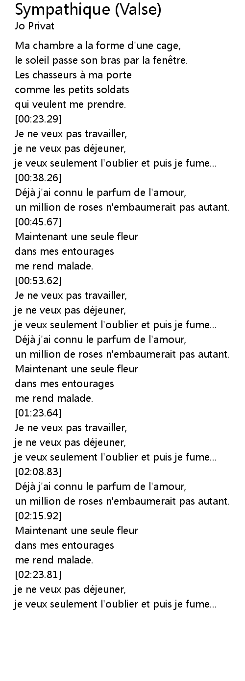| [00:23.83] | Je ne veux pas travailler, |