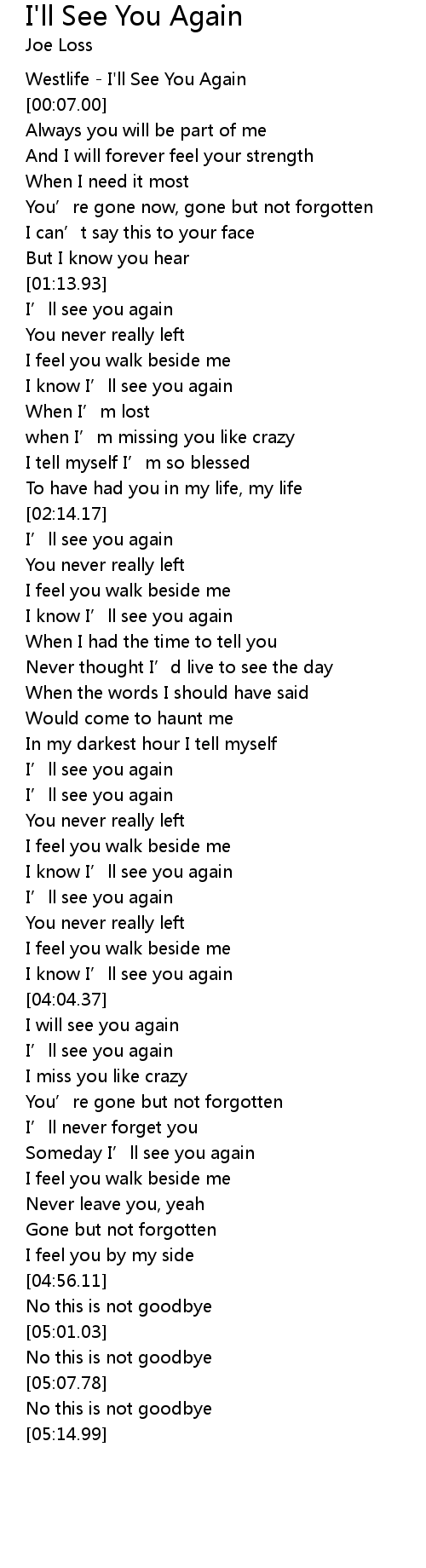 | [00:00.00] | Westlife I' ll See You Again |