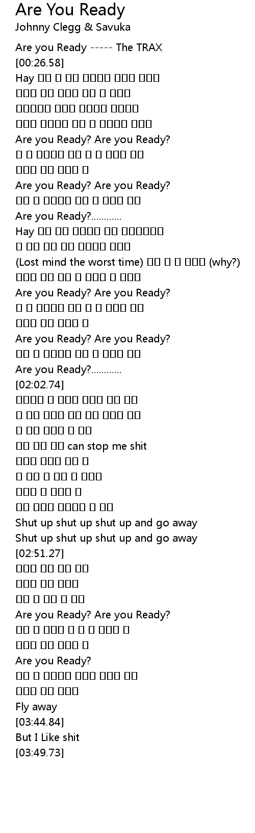 | [01:03.80] | Are you Ready? Are you Ready? |