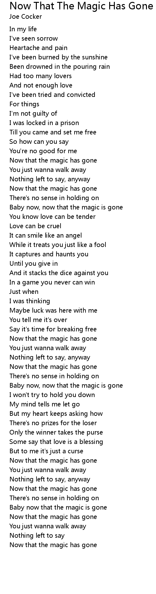 Now that the magic has gone |