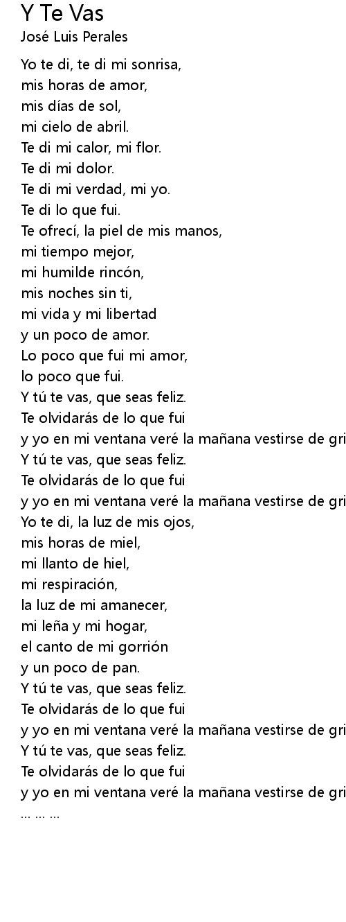 | Y tú te vas, que seas feliz. | |