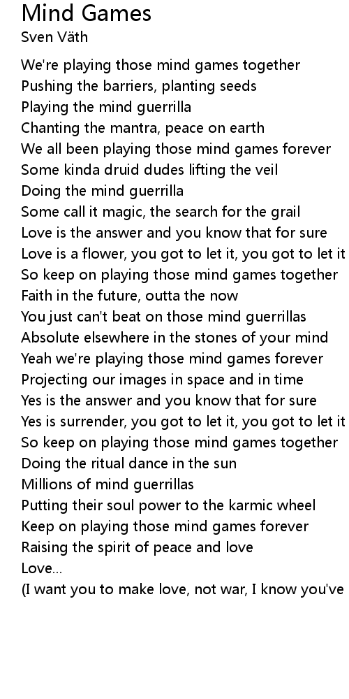 | Keep on playing those mind games forever | |