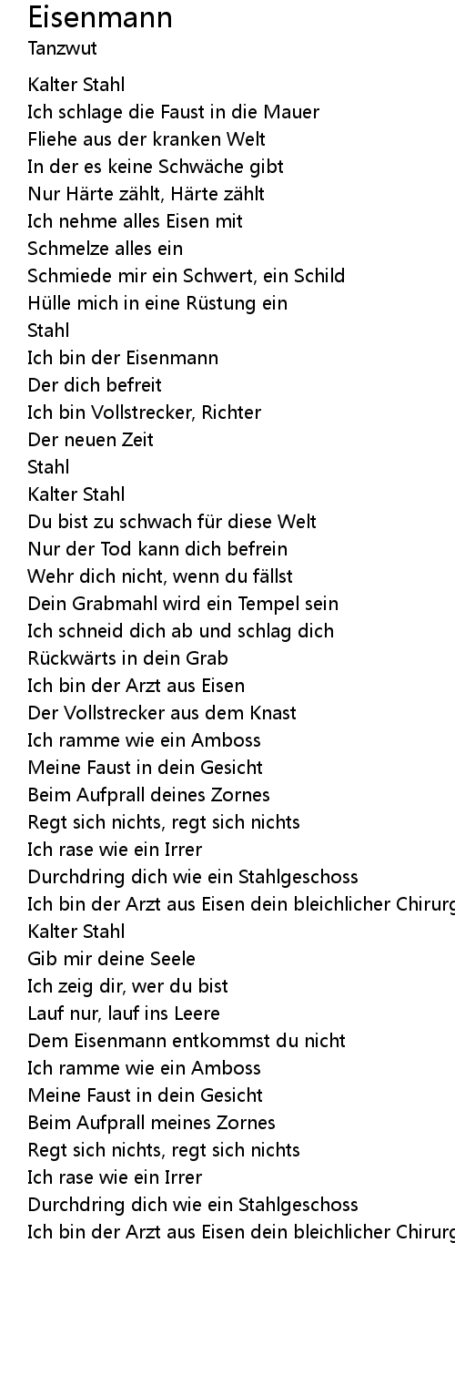 | Ich bin der Arzt aus Eisen dein bleichlicher Chirurg |