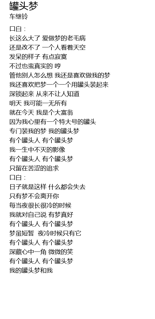 | [03:25.94] | 有个罐头人 有个罐头梦 |