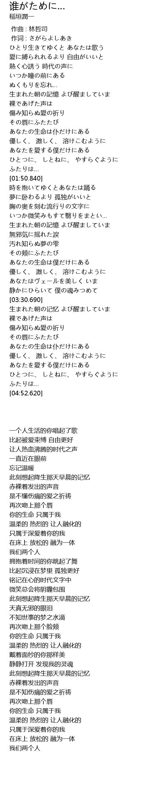 | [00:50.040] | 生まれた朝の記憶 よび醒ましていま |