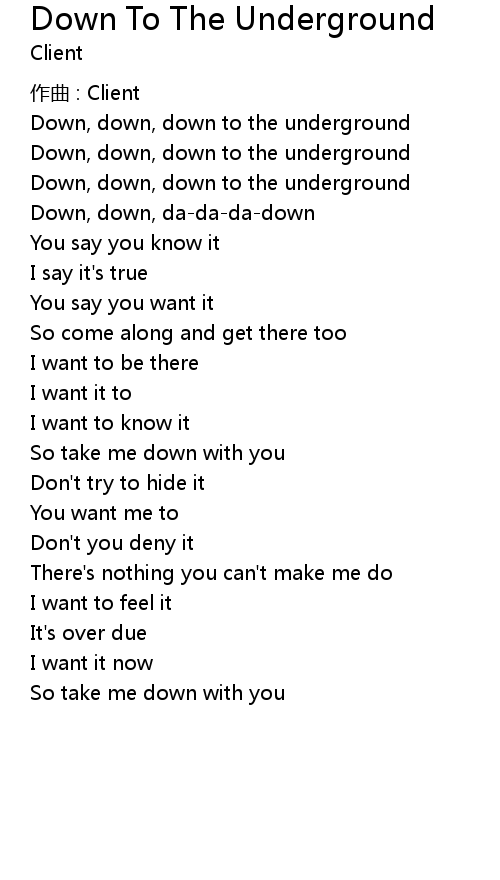 | Down, down, down to the underground | |