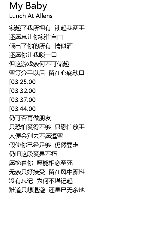 | [04:02.00][03:37.00][02:33.00][01:18.00] | MY BABY 请不要悄悄飘走 |