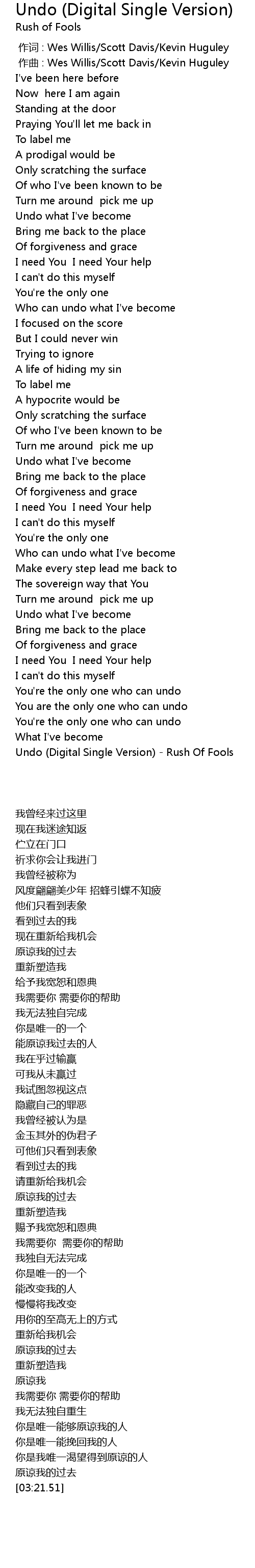 | [03:21.51] | Undo Digital Single Version Rush Of Fools |