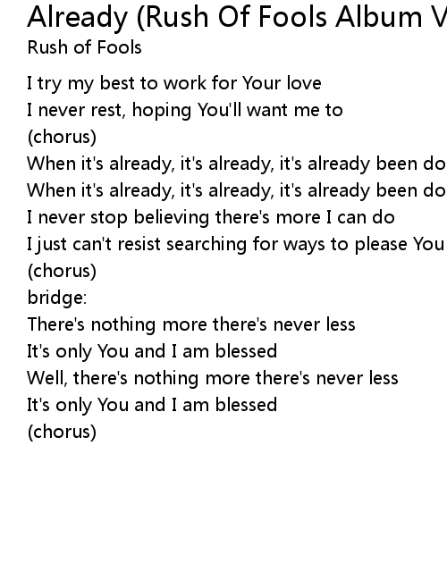 | Song | Already (Rush Of Fools Album Version) |