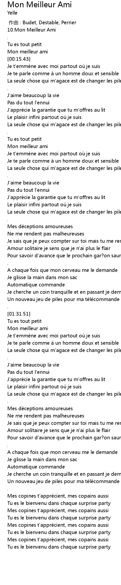 | [01:44.91] | Mon meilleur ami |