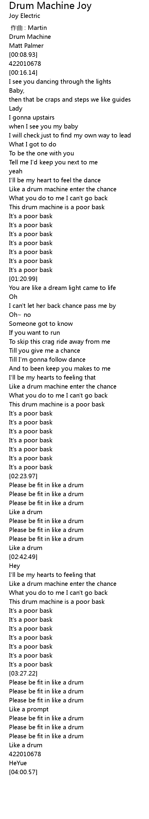 | [03:10.18] | This drum machine is a poor bask |