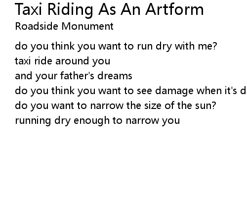 | Song | Taxi Riding As An Artform |