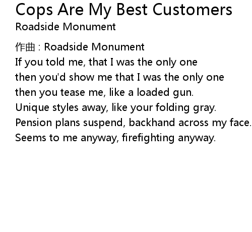 | Song | Cops Are My Best Customers |
