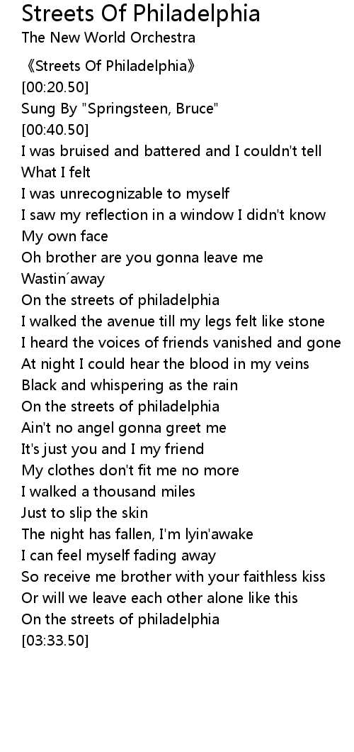 | [00:00.50] | 《Streets Of Philadelphia》 |