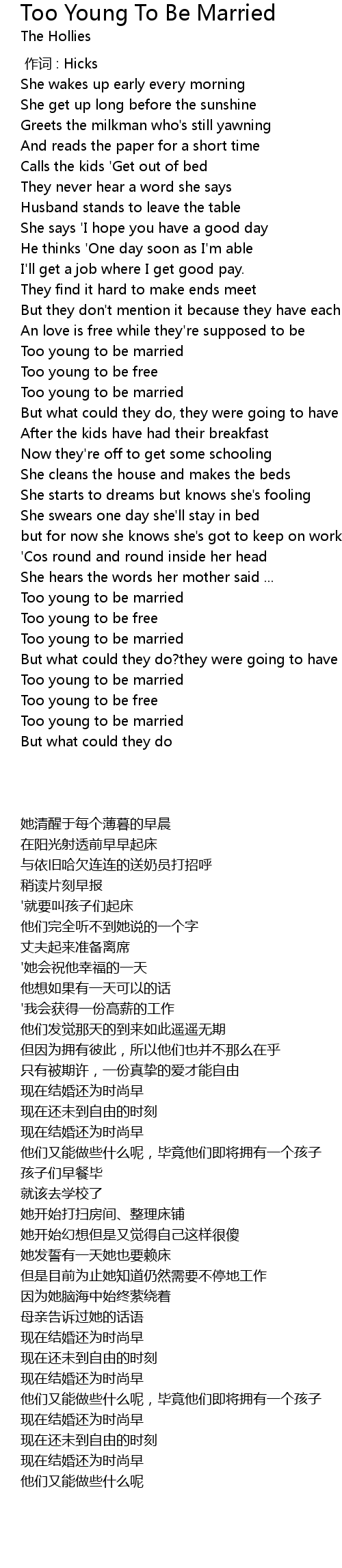 | [01:17.54] | Too young to be married |