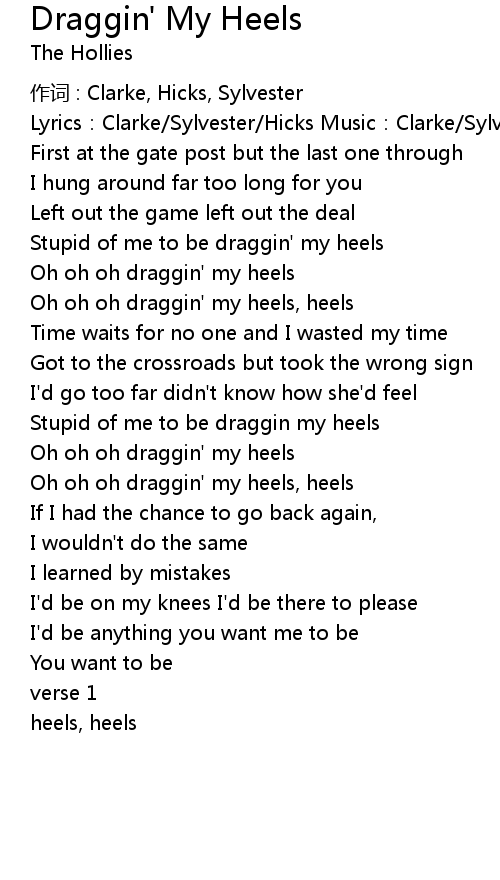 | Oh oh oh draggin' my heels, heels | |
