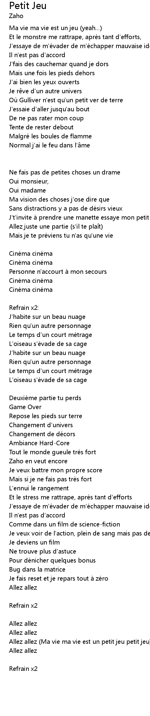 | Allez allez Ma vie ma vie est un petit jeu petit jeu | |