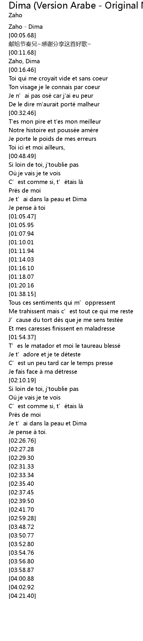 | [00:02.68] | Zaho - Dima |