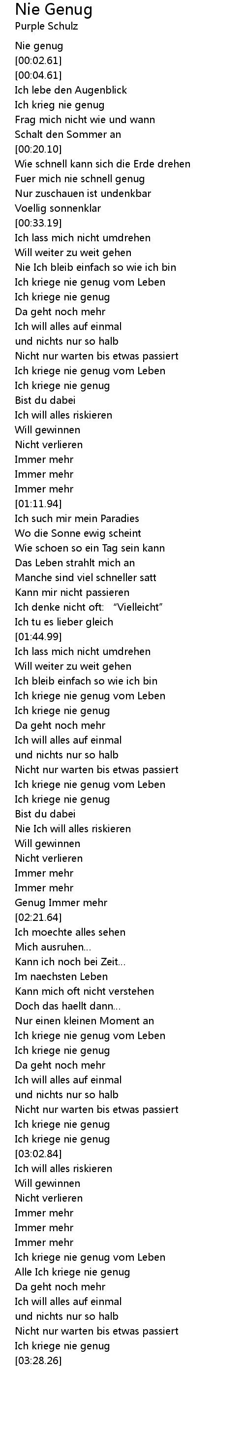 | [03:25.93] | Ich kriege nie genug |