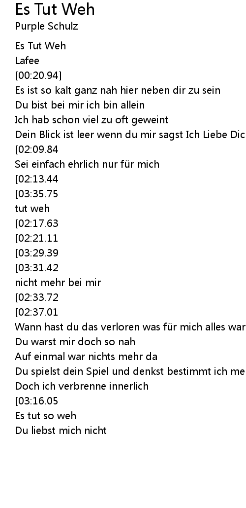 | [02:54.52] | Es tut so weh |