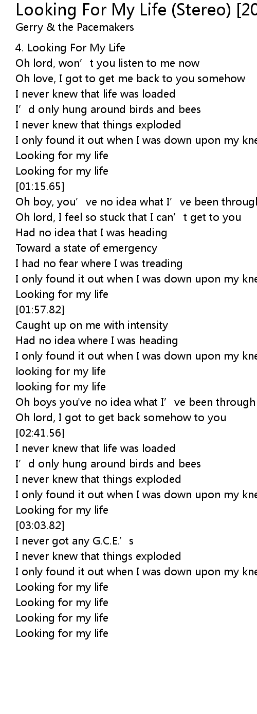 | Song | Looking For My Life (Stereo) [2008 Remastered Version] |