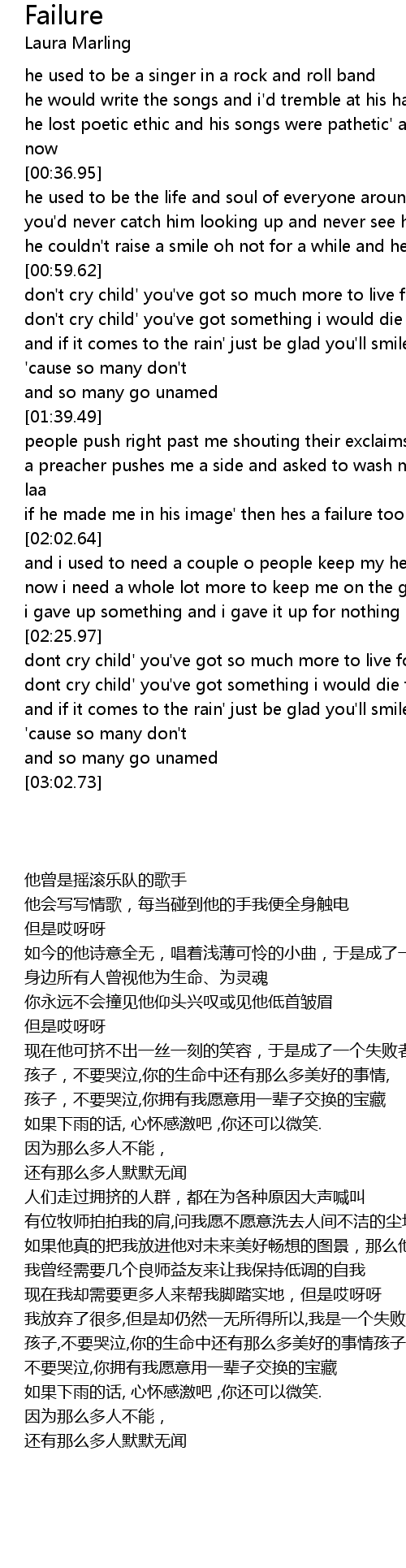he couldn't raise a smile oh not for a while and he's a failure now |