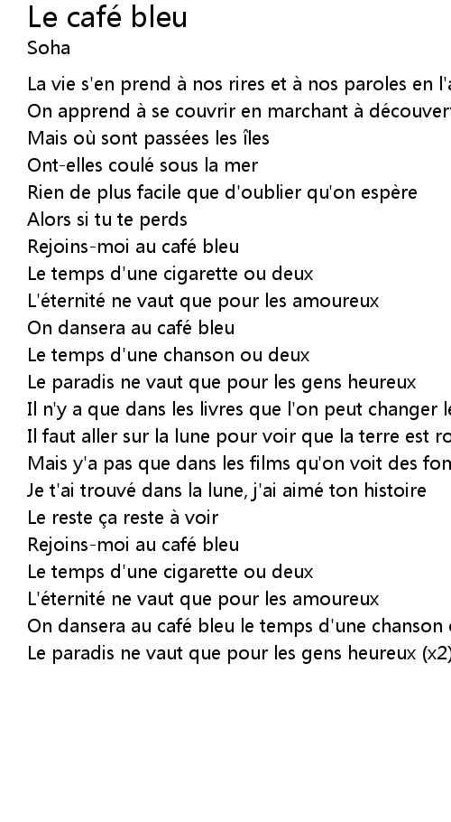 | On dansera au cafe bleu le temps d' une chanson ou deux | |