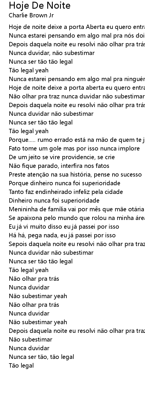 | Sepois daquela noite eu resolvi n o olhar pra traz | |