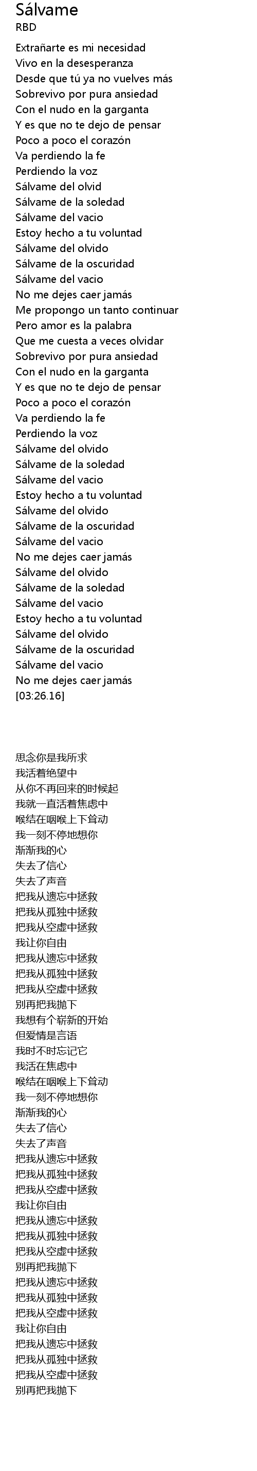 | [03:17.68] | Sálvame del vacio |