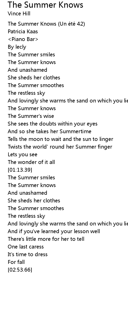 | [02:04.82] | The Summer knows |