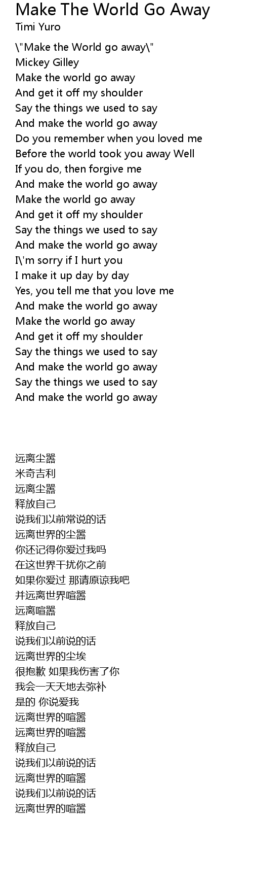 \"Make the World go away\" |