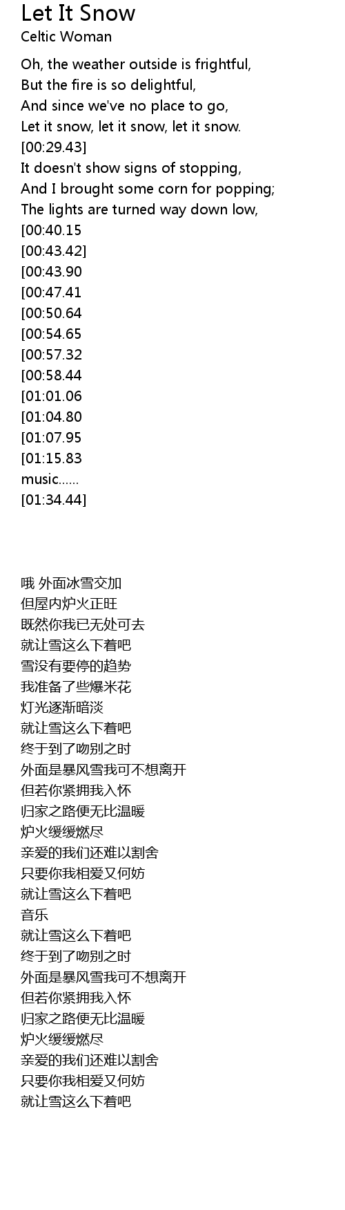 [01:37.43][00:40.15] Let it snow, let it snow, let it snow.