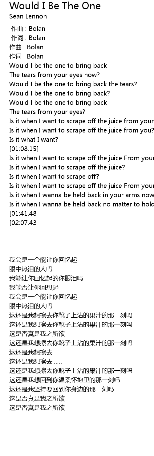 | [02:41.34][01:41.48] | Is it what I want? |