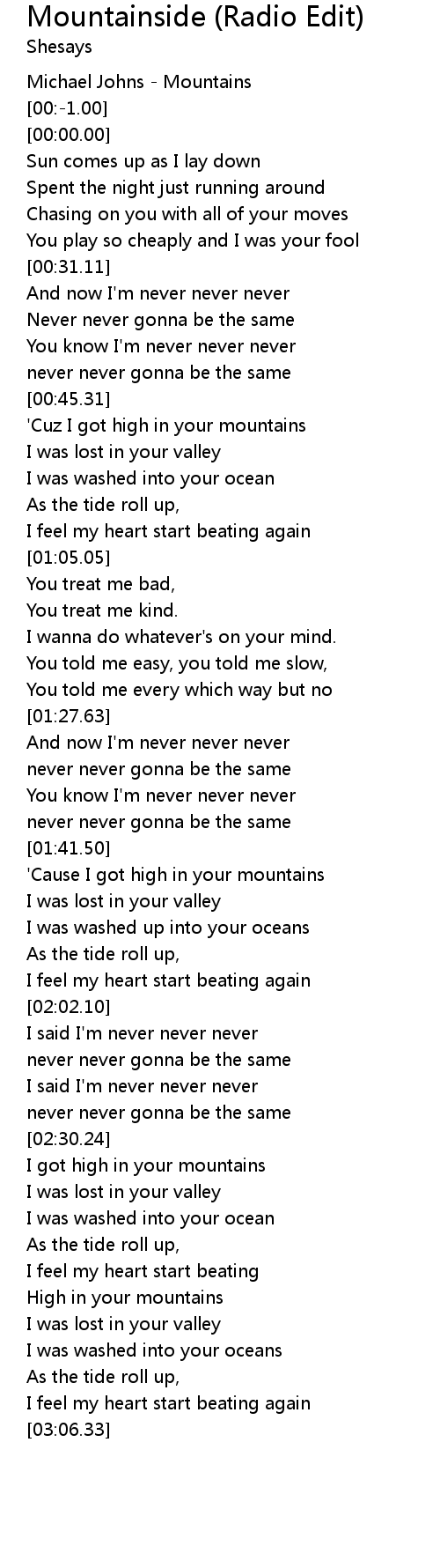 'Cuz I got high in your mountains |